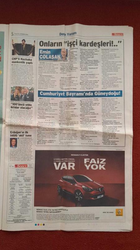 Kitap 2014 yılında yayınlanmıştır. 24 sayfadır. Sözcü Gazetesi 30 Ekim 2014 İkinci Habur Rezaleti, Sarayda İlk Bayram, Kalıcı Önlemler Alınmıyor Kazalar Cinayete Dönüştü, Viking'in Vedası, Gerçek Lider Fenerbahçe, Sana 2 Maç Kredi, Bölgeye Özel Teşvikle Tasarrufu Tabana Yaydı, Her Ay 200 Bin Kişiyi Tasarrufa Teşvik Etti adlı eser Türkçe dilindedir.