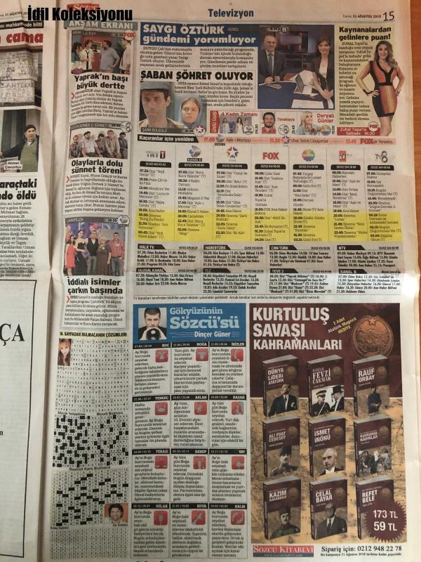 Sözcü Gazetesi, 31 Ağustos 2018, Kemal Kılıçdaroğlu, Erhan Usta, Canan Kaftancıoğlu, Bülent Turan, İğneden İpliğe Her Şey Zamlandı, İşgüzarlık, Kratiseverye de Yüzde 100 Zam, CHP'de Kavgalar Yeniden Alevlendi, Emekli Olmak İçin Yaş Beklemesin, Çocuğu Yanlış Okula Göndermişler, Ticaret Bakanlığı Sıcaklara Karşı Tedbirler Aldı, İşte Vatandaşın Cebini Yakan Fiyatlar, 30 Ağustos'u Coşkuyla Kutladık, Adem Ljajic, Urbano Cairo, Ali Koç, Fikret Orman, Oğuzhan Özyakup, Necip Uysal, Abdullah Gül, Jailson, Ovidiu Hategan, Octavian Sovre, Sebastian Gheorghe, Tolga Zengin, Loris Karius, Utku Yuvakuran, Şeyh Hamad bin Halife Al Tani, Şeyh Temim bin Hamad Al Tani, Erdal Torunoğulları, Ricardo Quaresma, Pepe, Mohammed Al Tani, Bosnak Asıllı Yıldızın Transferinde Mutlu Son Çok Yakın, Ljajic Bitiyor, Ali Koç'tan Jest adlı eser, Kitap > Süreli Yayınlar > Gazeteler kategorisinde İkinci El olarak satıştadır.