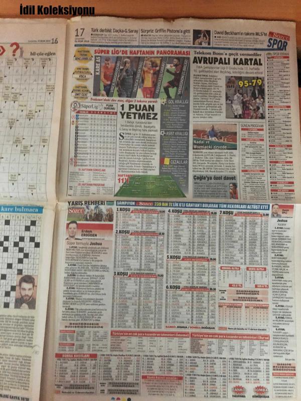 Sözcü Gazetesi, 31 Ocak 2018, Şükrü Elekdağ Uyardı: Tarihi Bilmemek Beka Tehdidiyle Karşı Karşıyayız, Karar Verin Artık!, Zamlar Füze Gibi, Türk Tabipleri Birliği'ne İs tepki Gösterdi, Soçi'de Ne İşi Var?, KKTC, Uyarmıştım, Devlet Okulunda Ulan Hıyar Ağası, Ensar Sınıfı, Torpilin Yoksa Uğraşma, G.Saray'ın Yeni Yönetiminden İki Günde İstifa Eden Celal Açar'dan Olay Sözler: Sessizliğini Bozdu, Sol Bek Doldu ama Orta Saha Düşündürüyor, Nagatomo Bitti, Sıkıntı Sürüyor, Nagatomo Galatasaray'da, Ndiaye Stoke City'de, Dursun Özbek Ne Yapacak?, 'Kramponları Biz Verdik!', Cinar Malines, Devre Arasında Transfer Dönemi Yatmaya Başladı, Giresun e France Ye Kupada Bugun Akhisar-Kayseri, Sivas'a Yeni 10 Numara, Deniz Nakiye Ömür Boyu Men, PFDK'ya Sevk adlı eser, Kitap > Süreli Yayınlar > Gazeteler kategorisinde İkinci El olarak satıştadır.
