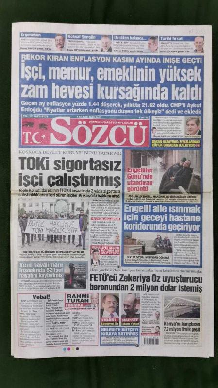 Sözcü Gazetesi 4 Aralık 2018 Dorukhan Toköz,Ozan Kabak,Bafetimbi Gomis,Ahmet Çalık,Güven Yalçın,Fikret Orman,Islam Slimani,Erwin Koeman,Mathieu Valbuena,Şevket Çoruh,Doğuş Balbay,Şule Çet,Süleyman Soylu,Zekeriya Öz,Berat Albayrak,Faik Öztrak,Mahir Ünal,Binali Yıldırım,Numan Kurtulmuş adlı eser, Kitap > Süreli Yayınlar > Gazeteler > Türkiye > Genel > Günlük kategorisinde İkinci El olarak satıştadır.