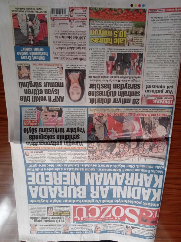 Sayfa Boyutu: 38*56cm Sayfa Sayısı: 20 Sözcü Gazetesi Yıpranma, sararmalar, kupon kesiği ve yırtılmalar zamana bağlı olarak görülebilir