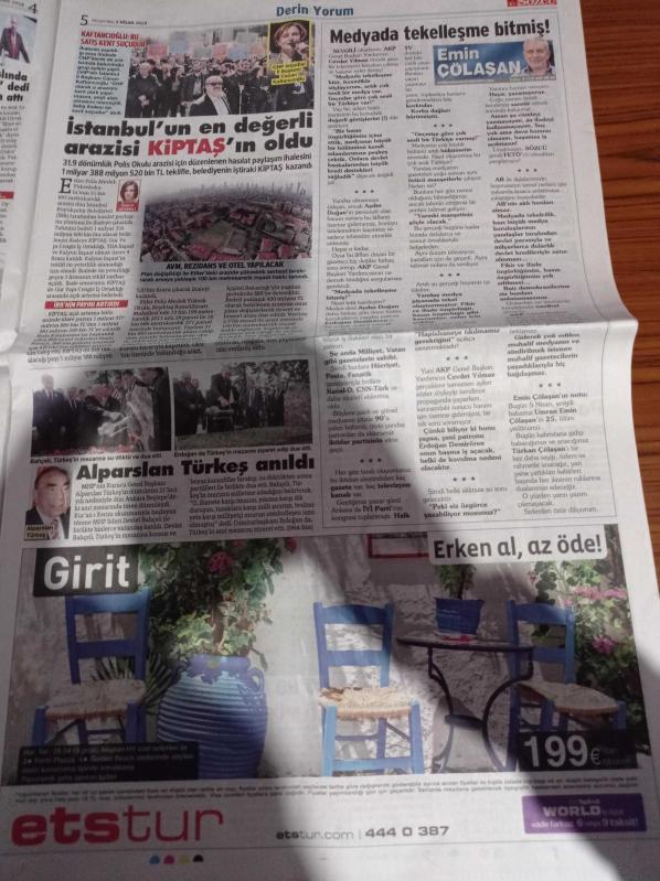 Sayfa Boyutu: 38*56cm Sayfa Sayısı:20 Sözcü Gazetesi Yıpranma, sararmalar, kupon kesiği ve yırtılmalar zamana bağlı olarak görülebilir