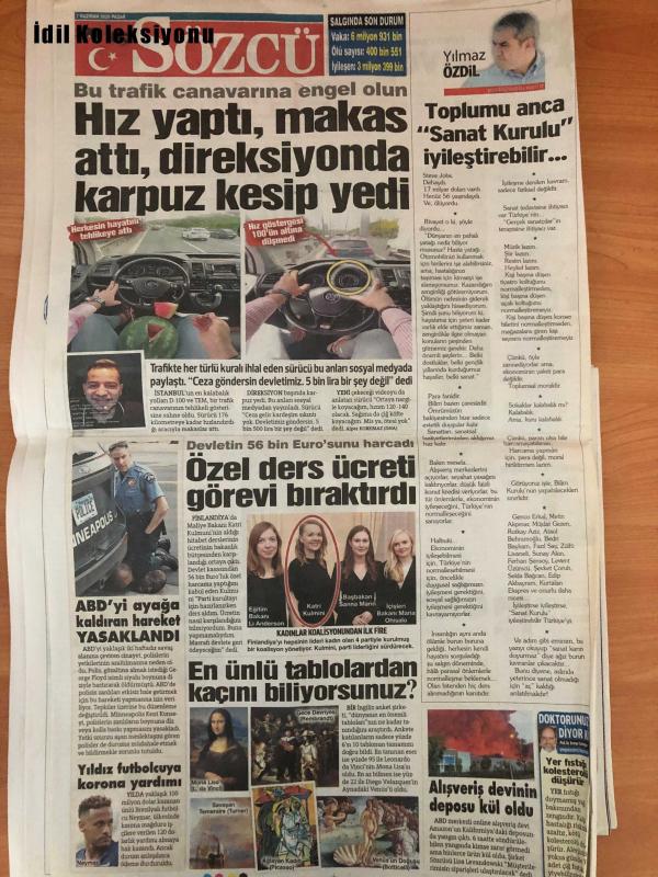 Sözcü Gazetesi, 7 Haziran 2020, Rahmi Turan, Mecall Doğru, Serpil Yılmaz, Ege Cansen, Yılmaz Özdil, Emin Çolaşan, Vell Toprak, Enis Berberoğlu, Deniz Ayhan, Ekrem İmamoğlu, Dr. Serdar Savaş, Mustafa Şentop, Saygı Öztürk, Prof. Alpay Azap, Mansur Yavaş, Recep Tayyip Erdoğan, Ali Koç, Zekeriya Alp, Ali Koç, Nihat Özdemir, Ali Koç, Cedi Osman, Ersan Ilyasova, Furkan Korkmaz, Ali Abüsselam Yılmaz, Michael Jordan, Duygun Yarsuvat, Mustafa Cengiz, Sergen Yalçın, Axel Tuanzebe, Atiba Hutchinson, Henry Onyekuru, Robert Lewandowski, Ergin Ataman, Nihat Özdemir, Ali Koç, Semih Özsoy, Mehmet Ali Aydınlar, Aziz Yıldırım, Sergen Yalçın, Elneny, Yasin Yıldırım, Uğurcan Çakır, Ahmet Ağaoğlu, Serkan Asan, Kerem Baykuş, Mustafa Kemal Danabaş, Aram Markaroğlu, Lemi Çelik, Erkan Toğan, Bianka Busa, Michael Jordan, George Floyd, Cedi Osman, Ersan İlyasova, Furkan Korkmaz, Nihat Özdemir'in Geleceği, Fenerbahçe'de İhraç Süreci adlı eser, Kitap > Süreli Yayınlar > Gazeteler kategorisinde İkinci El olarak satıştadır.