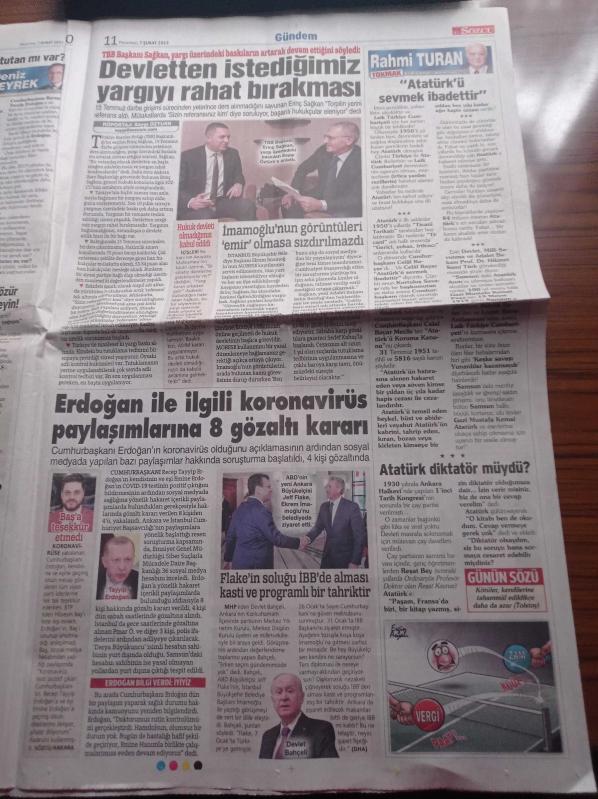 Sayfa Boyutu: 38*56cm Sayfa Sayısı:20 Sözcü Gazetesi Yıpranma, sararmalar, kupon kesiği ve yırtılmalar zamana bağlı olarak görülebilir