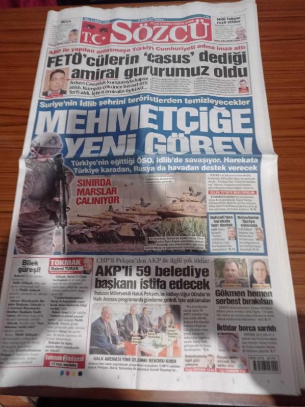 Sözcü Gazetesi - 8 Ekim 2017 - 30 Bin Feet'te Zafer Sözü - TFF'ye Siyah Çelenk - Mehmetçiğe Yeni Görev - İsmail Saymaz - Barış Yarkadaş - Tuğamiral Yankı Bağcıoğlu adlı eser Türkçe dilindedir.