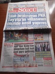 Sözcü Gazetesi - 8 Mart 2015 - Fenerbahçe Galatasaray Derbisi - Silah Bırakmayan PKK Recep Tayyip Erdoğan'ın Villasının Önünde Keşif Yaomis- Atatürk'e Dil Uzatan AKP'li Kadınlar Atatürk'e Dua Etsin - AKP'liler Küba'dan Dönerken Koli Koli Özel Puro Getirmiş adlı eser, Kitap > Süreli Yayınlar > Gazeteler kategorisinde İkinci El olarak satıştadır.