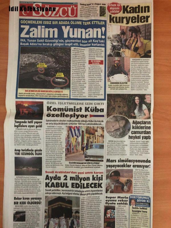 Sözcü Gazetesi, 9 Ağustos 2021, Rahmi Turam, Mecati Doğru, Sinan Meydan, Nilay Kartaltepe, Ahu Pakdemirli, Murat Emir, Nevzat Yanmaz, Deniz Ayhan, Saygı Öztürk, Prof. Ismail Cinel, Prof. Ayşe Özcan, Thomas Bach, Allyson Felix, Buke Madaye, Kirsty Wanh Gioiage, Caeleb Dressel, Alex Teixeira, Josef de Souza, Lopez, Kaalp Gurgle, Sam An, Momiji Nishiya, Mete Can Oz, Yasemin Ecem, Dana Taurasi, Sue Bird, Novak Djokovic, Kobei Uchimura, Boat Lyles, Naomi Osaka, Simone Bles, Michy Batshuayi, Diego Costa, Ricardo, Andris Treimanis, Adam Farkas, Andris Treimanis, Ricardo de Burgos, Victor Nelsson, Kerem Tunçeri, Kamil Jozwiak, Wayne Rooney, Hakemler Belli Oldu, Beşiktaş, Alex Teixeira'ya Kavuşuyor, Josef'in Büyük Katkısı Oldu adlı eser, Kitap > Süreli Yayınlar > Gazeteler kategorisinde İkinci El olarak satıştadır.