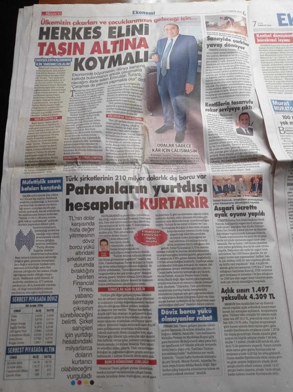 Sözcü Gazetesi - 9 Aralık 2016 - Fenerbahçe Feyenoord'u Yenip Gruptan Lider Çıktı- Fox TV Haber Sunucusu Fatih Portakal Bir Gün Sabaha Karşı Kapım Çalınır Diye Endişe Duyuyorum - FETÖ'nün Ablaları Hala Faal Dikkat - İnşaatçıya ve İhracatçıya Büyük İkramiye Çıktı - Recep Tayyip Erdoğan Kapıları Açarız Dedi Avrupa Birliği'nden 484 Milyon Euro Geldi adlı eser Türkçe dilindedir.