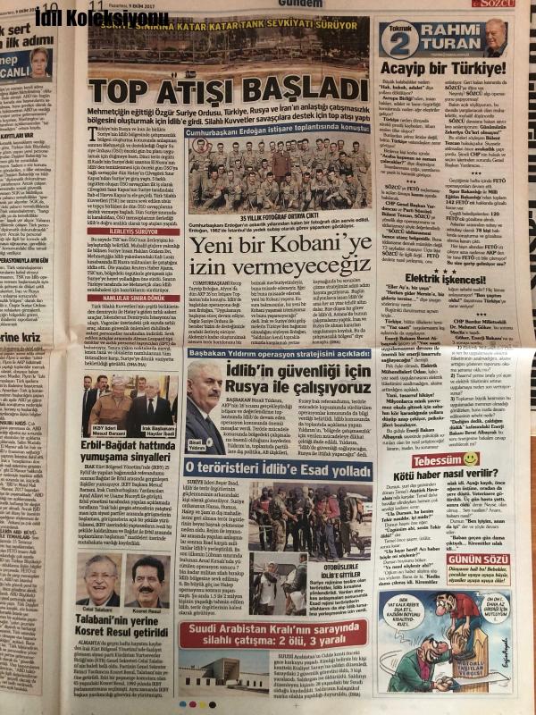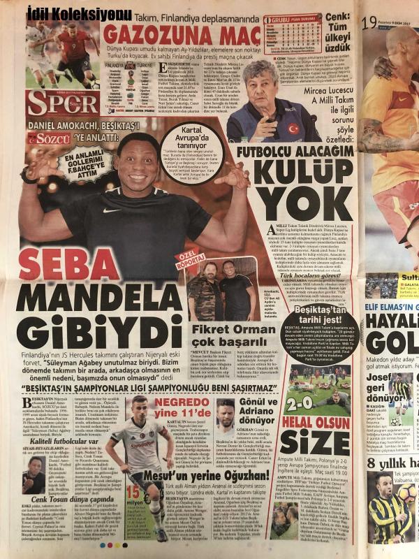 Sözcü Gazetesi, 9 Ekim 2017, Yılmaz Büyükerşen, Saygı Öztürk, Rahmi Turan, Celâl Ülgen, Mehmetçik, Recep Tayyip Erdoğan, Binali Yıldırım, Devlet Bahçeli, Cemil Yaman, Yusuf Toltar, Asuman Aranca, Nurettin Özdebir, Erdoğan Süzer, Vedat Erdem, Kamil Elibol, Ayşe Sucu, Yekta Güngör Özden, Murat Muratoğlu, Zeynep Gürcanlı, Cenk Tosun, Mircea Lucescu, İgor Tudor, Martin Linnes, Mevlüt Erdinç, Bafetimbi Gomis, Elif Elmas, Josef de Souza, Mathieu Valbuena, Alper Potuk, Tuvana Türkay, Aykut Kocaman, Mehmet Topal, Rahmi Özcan, Serkan Dereli, Mustafa Cengiz, Asuman Aranca, Ataman Güneyligil, Mesut Yıldırım, Puan Durumu, Finlandiya-Türkiye, Ukrayna-Hırvatistan, Cenk: Tüm Ülkeyi Üzdük, Mircea Lucescu'nun A Milli Takım İle İlgili Yorumu, Beşiktaş'tan Tarihi Jest, Ampute Milli Takımı'nın Başarısı, Gomis Rekor Kırar adlı eser Türkçe dilindedir.