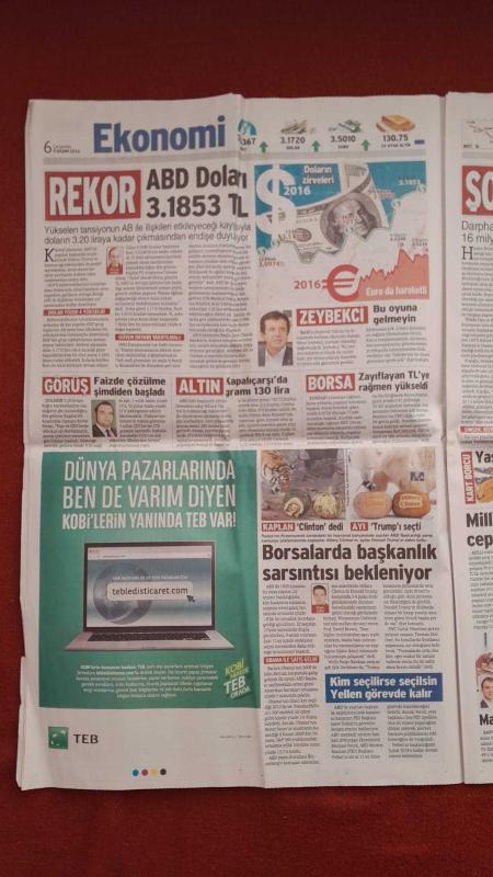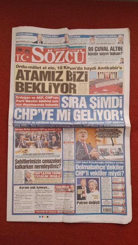 Kitap 2016 yılında yayınlanmıştır. 20 sayfadır. Sözcü Gazetesi 9 Kasım 2016 Sıra Şimdi CHP'ye Mi Geliyor, Dolarda Rekor, TÜİK Bir Günü Yok Saydı, Dolmabahçe'dekiler CHP'li Vekiller Miydi, ABD Sandığa Gitti, Hillary Bir Adım Önde, Şampiyonları Duyun, Çare Guidetti, Usta İşi Salvolar, Özbek: Sürpriz Yapabiliriz, Terim İşi Sıkı Tutuyor, Fener'den Başkası Yalan adlı eser Türkçe dilindedir.
