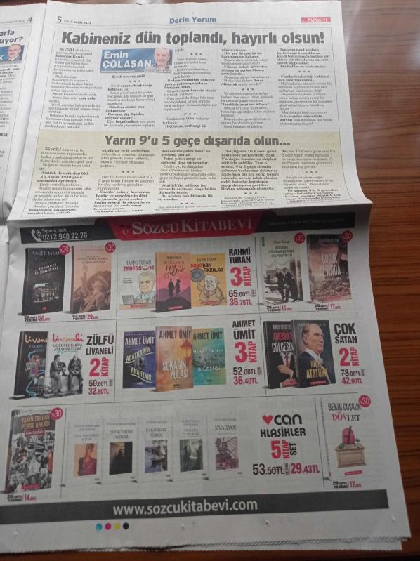 Sözcü Gazetesi - 9 Kasım 2021 - Fenerbahçe'de Mesut Özil Sistemi - - Passolig Kartıyla Tribüne Giren Rakip Taraftar Olay Çıkardı - Zengin Daha Zengin Fakir Daha Fakir Oldu - 13 Şehir Hastanesine Ödenen Parayla 57 Hastane Yapılırdı - Recep Tayyip Erdoğan Kürtçe Şarkıya Tempo Tuttu - Cemal Enginyurt adlı eser Türkçe dilindedir.