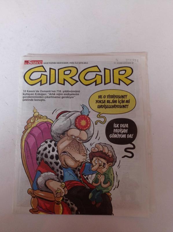 Sözcü Gırgır Mizah Gazetesi - Recep Tayyip Erdoğan 10 Kasım'da Osmanlı'nın 716. Yıldönümünü Kutladı - Ahmet Davutoğlu - Türkiye'de 400 Bin Çocuk Okula Gitmiyor - Akit Televizyon Kanalı - Yıldız Sarayı Cumhurbaşkanlığına Tahsis Edildi - JİTEM - Milliyetçi Hareket Partisi'nde Olağanüstü Kurultay- Nasreddin Hoca adlı eser Türkçe dilindedir.