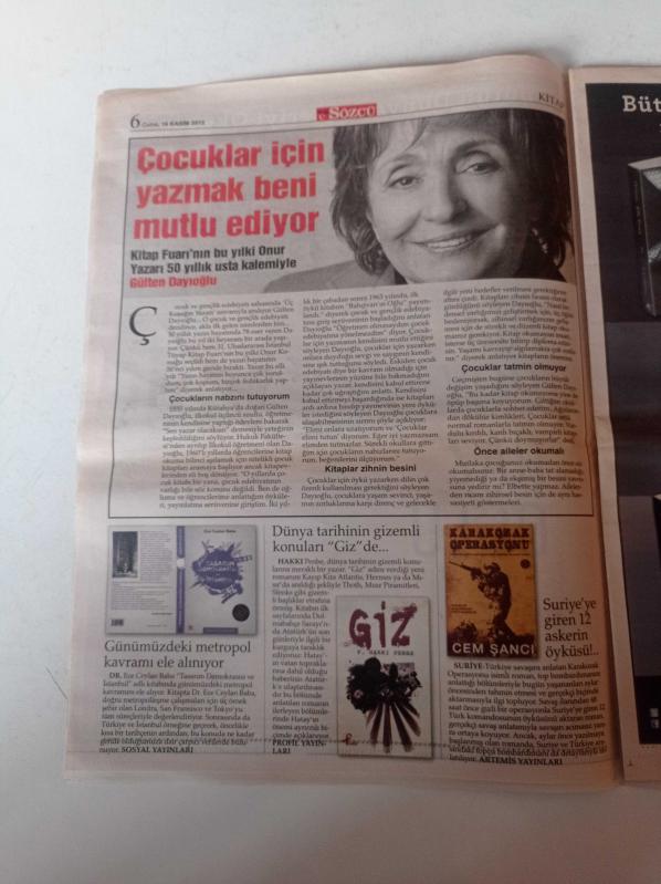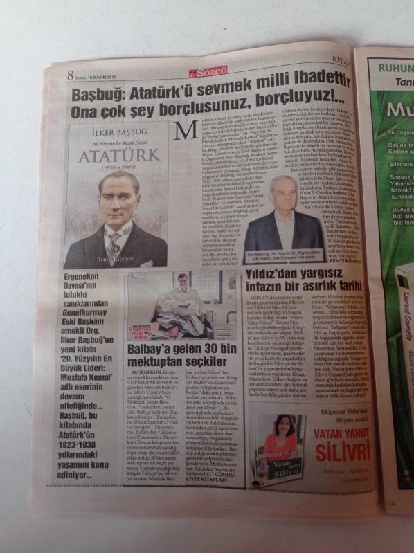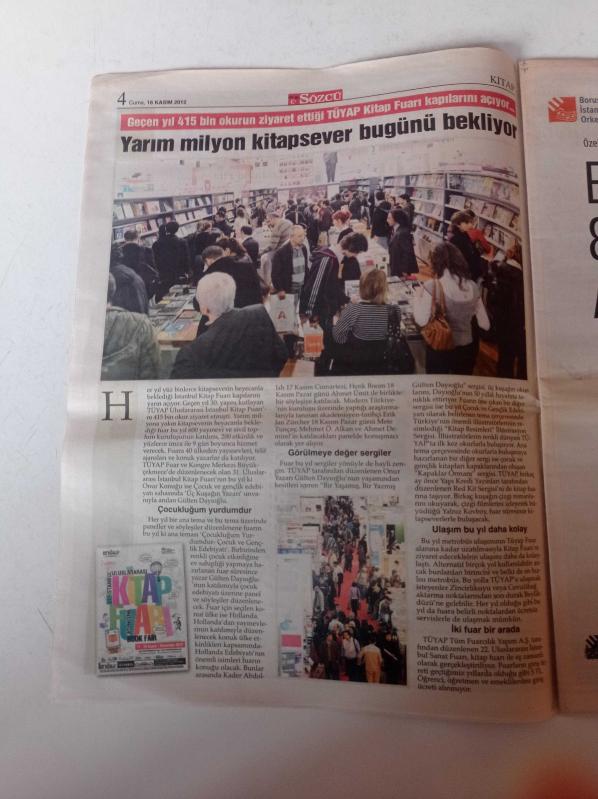 Sözcü Kitap Gazetesi - 16 Kasım 2012 - Kitap Fuarı'nın Bu Yılki Onur Yazarı 50 Yıllık Usta Kalemiyle Gülten Dayıoğlu - Suriye'ye Giren 12 Askerin Öyküsü - Grinin Elli Tonu - İlker Başbuğ 20. Yüzyılın En Büyük Lideri Atatürk - Müyesser Yıldız- Vatan Yahut Silistre - Mustafa Balbay'a Gelen 30 Mektuptan Seçkiler adlı eser Türkçe dilindedir.