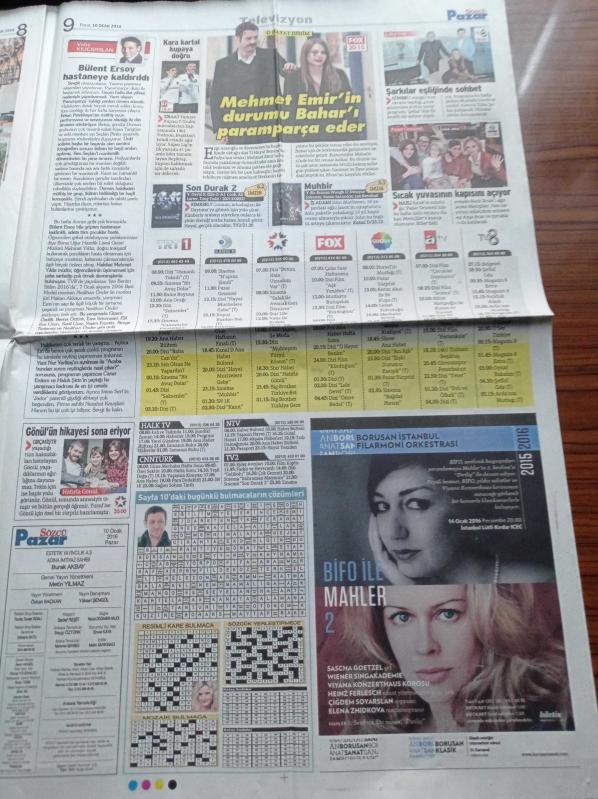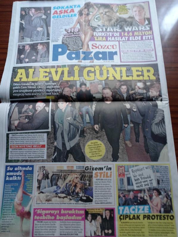Sözcü Pazar Gazetesi - 10 Ocak 2016 - Star Sara Türkiye'de 14.6 Milyon Lira Hasılat Elde Etti - Beyonce 118 Milyon kişiyi Eğlendirecek - Cem Yılmaz - Emrah Oğlu Elyesa'ya Belçika'da Villa Aldı - Kurtlar Vadisi'nin Ajan Zeynep'i Defne Samyeli Bond - Türkan Şoray adlı eser Türkçe dilindedir.
