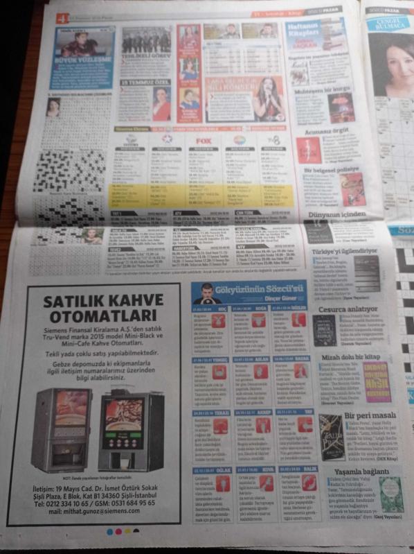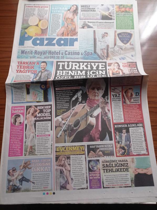 Sözcü Pazar Gazetesi - 15 Temmuz 2018 - Tuba Ünsal'ın Romantik Tatiline Hayran Tepkisi - Tarkan Baba Oldu Tebrik Yağıyor - Bade İşçil Ben Hep Top Model Kalacağım - Burçin Terzioğlu Evlenmeyi Düşünmüyorum - Tuba Büyüküstün Umut Evirgen Konser Aşıkları - Festivalin Gelirleri Tohum Otizm Vakfı'na - Joan Baez Türkiye Benim İçin Özel Bir Ülke adlı eser Türkçe dilindedir.