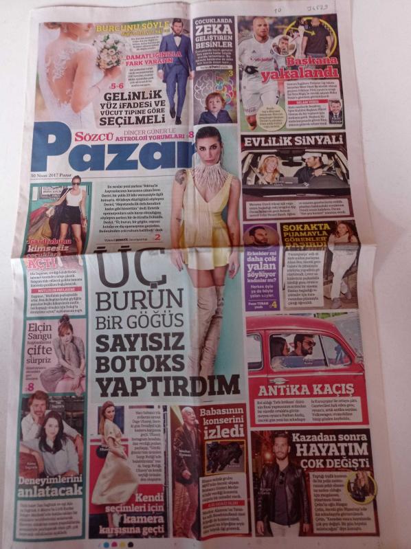 Sözcü Pazar Gazetesi - 30 Nisan 2017 - Modacı Cengiz Abazoğlu Kadın Şiddetine Tahammül Edemiyorum - İrem Derici Üç Burun Bir Göğüs Sayısız Botoks Yaptırdım - Mazhar Alanson - Özge Ulusoy - Elçin Sangu adlı eser Türkçe dilindedir.