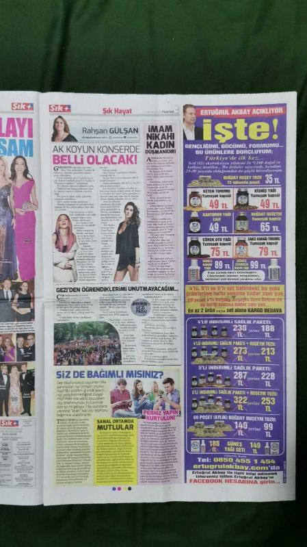 Boyutu: Boyu:55 Eni:38 Gazetede yıpranma,sararma,kupon kesiği ve yırtılma zamana bağlı olarak görülebilir
