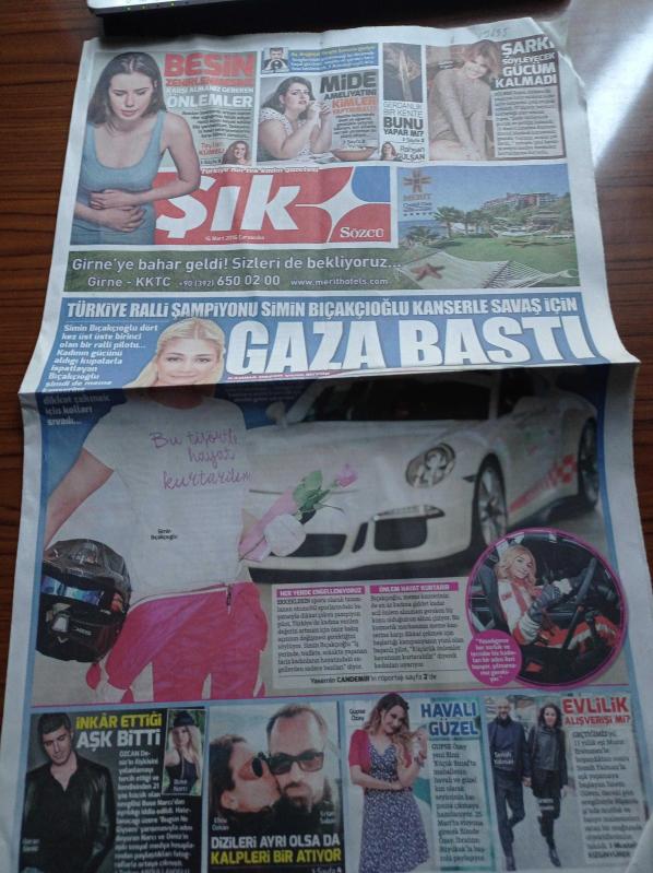 Sözcü Şık Gazetesi - 16 Mart 2016 - Gülben Ergen Şarkı Söyleyecek Gücüm Kalmadı - Türkiye Ralli Şampiyonu Simin Bıçakçıoğlu Kanserle Savaş İçin Gaza Bastı - Ebru Özkan Ve Ertan Saban Dizileri Ayrı Olsa Da Kalpleri Bir Atıyor - Özcan Deniz'in İnkar Ettiği Aşk Bitti - Gupse Özay adlı eser Türkçe dilindedir.
