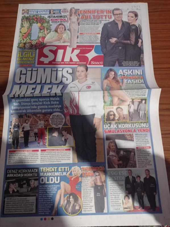 Sözcü Şık Gazetesi - 22 Eylül 2016 - Bülent Ersoy Lerzan Mutlu'yu Tehdit Etti Mahkemelik Oldu - Oya Aydoğan Brad Pitt - Angelina Jolie - Jennifer Aniston'un Ahı Tuttu - Ece Seçkin Uçak Korkusunu Simülasyonla Yendi - 16 Yaşındaki Genç Sporcu Melek Sarı - Deniz Akkaya - Ozan Güven - Cem Yılmaz - Tiyatrocu Tuba Ünsal - İştahımızı Kontrol Edebilir Miyiz adlı eser Türkçe dilindedir.