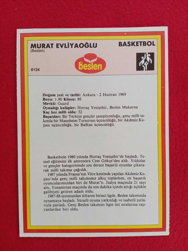Sporcu Kart - Basketbol, Beslen, Murat Evliyaoğlu - Gelişim Spor - 17.5x12.5 cm, 1 yıl önce satışa sunulmuştur.