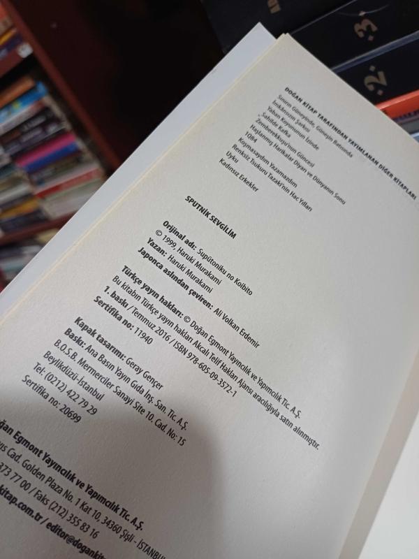 Sputnik Sevgilim, Haruki Murakami tarafından kaleme alınmıştır. Kitap 2016 yılında Doğan Egmont Yayınları tarafından [İstanbul] yayınlanmıştır. Bu baskının çevirisi Ali Volkan Erdemir tarafından yapılmıştır. 224 sayfadır. Sputnik Sevgilim adlı eser Türkçe dilindedir.