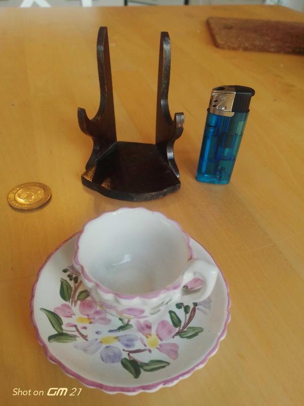 Standında seramik obje, fincan ve tabak başlıklı antika/koleksiyon objesinin menşei belirtilmemiştir. 1950-1999 arası dönemine aittir.
