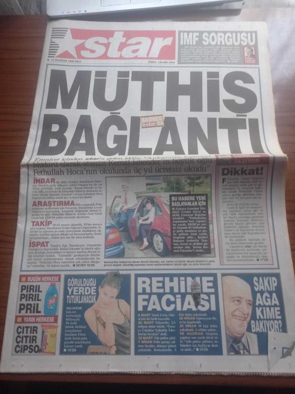 Star Gazetesi - 15 Haziran 1999 - Fatih Akyel Ve Okan Buruk'a Paris Saint Germain Kancası - Ogün Temizkanoğlu ile Abdullah Ercan Fenerbahçe'de Topbaşı Yaptı - Müslüm Gürses Konserinde Kendilerini Jiletlediler - İstanbul'da Metallica Konseri Olaylı Geçti - Ebru Şallı Görüldüğü Yerde Tutuklanacak - Ankara'ya Emniyet Müdürü Olarak Atanan Kemal İskender'in Büyük Oğlu Fethullah Gülen'in Okullarında Üç Yıl Ücretsiz Okudu adlı eser, Kitap > Süreli Yayınlar > Gazeteler kategorisinde İkinci El olarak satıştadır.