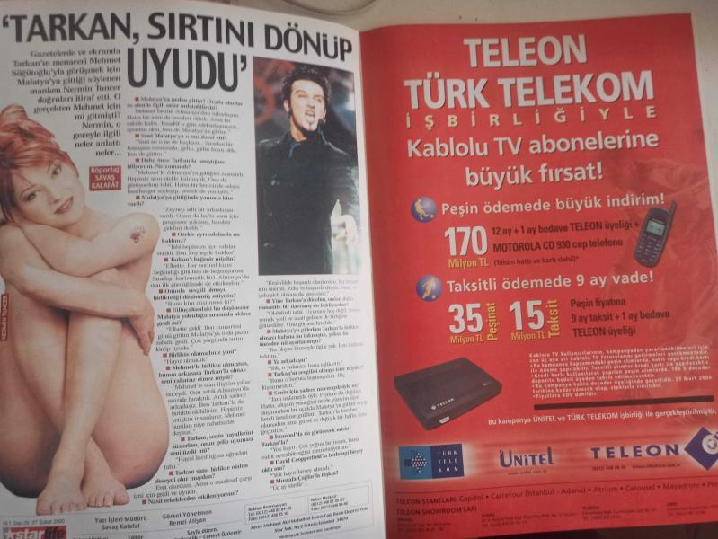 Star Life Haftalık Aktüalite Sinema Tiyatro Müzik ve Magazin Dergisi - 27 Şubat 2000 - Tuğba Özay - Emrah - Billur Kalkavan - İbrahim Erkal - Faik Ergin - Berke Hürcan - Emine Ün - Mithat Can - Deniz Akkaya - Teoman - Reha Muhtar - Şafak Karaman - Metin Tekin - Sanem Çelik - Mine Çayıroğlu - Ebru Güzel - Mehmet Karaaslan - Helin Avşar - Özlem Yıldız - Engin Ardıç - Şenay Akay - Gülşen Işık - Nilgün Özköseoğlu - Esin Demirören - Gülsen Erberk - Neşe Erberk - Semiramis Pekkan - Yasemin Koşal - Cem Ceminay - Savaş Karakaş - Ece Uslu - Tülin Şahin - Mehmet Şumnu - Burcu Çağrı - Feray Kavrar - Buğra Özçetin - Şenay Akay - Buğra Özçetin - Selin Boronkay - Melissa Düğen - Ünver Oral - Didem Öner - Nermin Tuncer - Savaş Kalafat fotoğraf ve haberi - Tam Takım Dergi Yıpranma, sararmalar, kupon kesiği ve yırtılmalar zamana bağlı olarak görülebilir