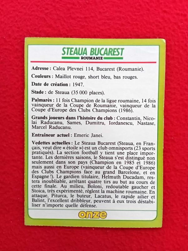 Steaua Bucarest - Onze Mondial Football Collection Photo Card Team - Les Plus Grands Clubs Du Monde - 14X10 cm - Futbol Koleksiyon Fotokart - Steau Bükreş, Hagi