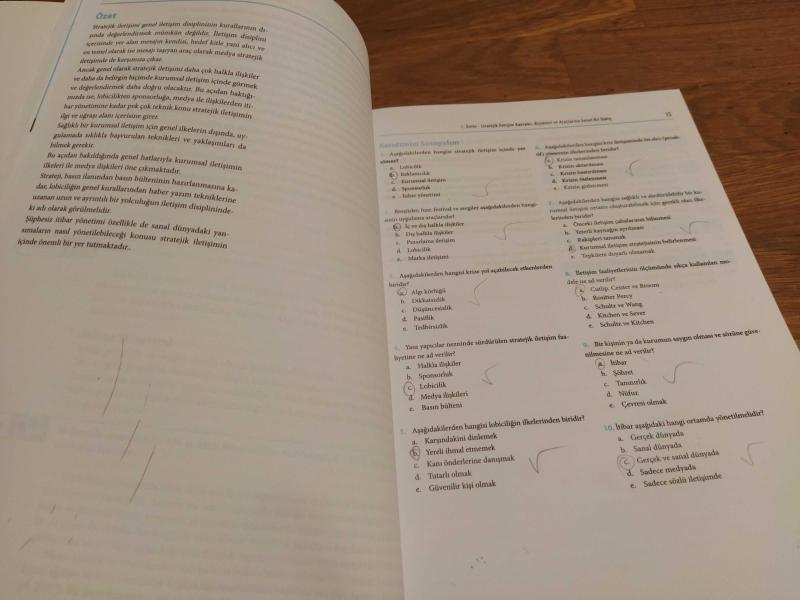 Birkaç sayfası işaretlenerek, notlar alınarak çalışılmış. Bölüm sonu soruları cevaplanmış.