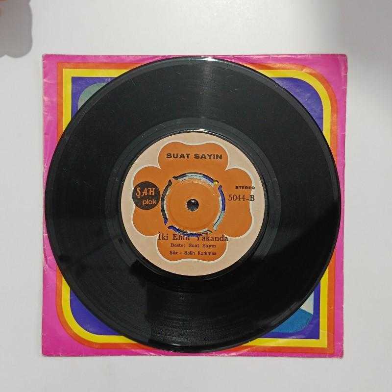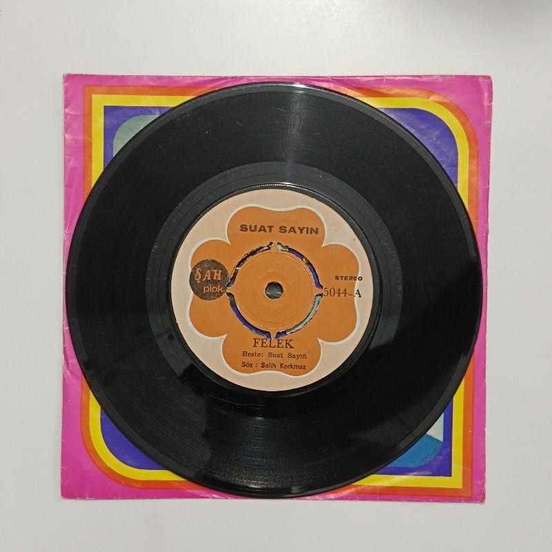 şarkıcı/grup-Suat SAYIN şarkılar -Felek - iki elim yakanda tür -arabesk/fantazi baskı/press - plak -8/10 kapak -8/10(şarkılar farklı) MPN no -ŞAH-5044 bilgi -