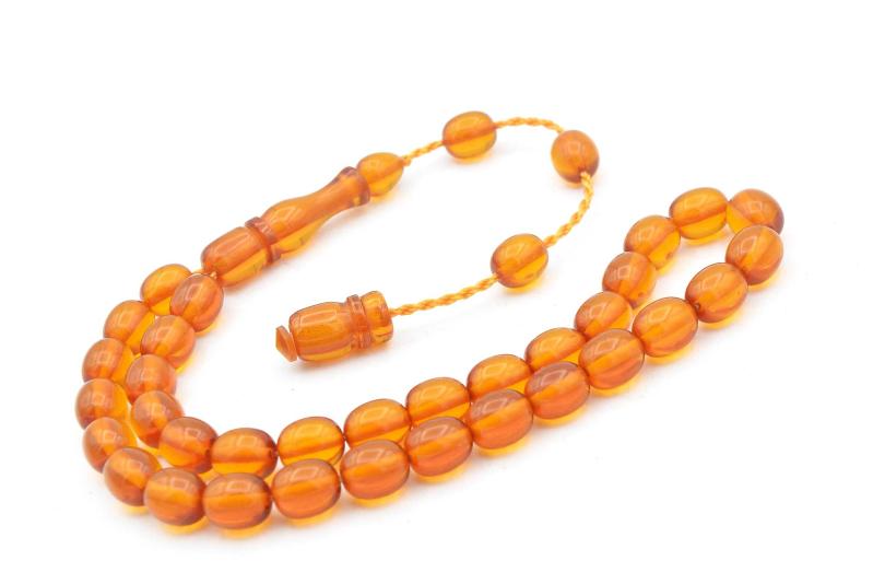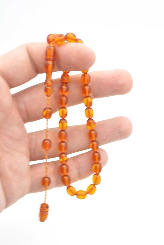 Şükrü Baba Yapımı Bilek Boy Turuncu Sıkma Kehribar Tesbih 1.Kalite Orijinal Sıkma Kehribar Tesbih Sıkma Kehribar tesbihimiz takımlı sistemlidir. Sıkma Kehribar tesbihimiz günlük çekime uygundur. Orijinal sıkma kehribar olduğu için zamanla renk almaktadır. Sıkma kehribar tesbihimizin ölçüleri: Tane Ebadı: 6.5*8 Mm İmame Boy: 2.6 Cm Toplam Boy: 26 Cm Ağırlık: 11 Gram Ürünlerimiz doğal olduğu için renk tonlarında küçük farklılıklar olabilir. Tesbihlerde püskül modelleri stok durumuna göre farklılık gösterebilir.
