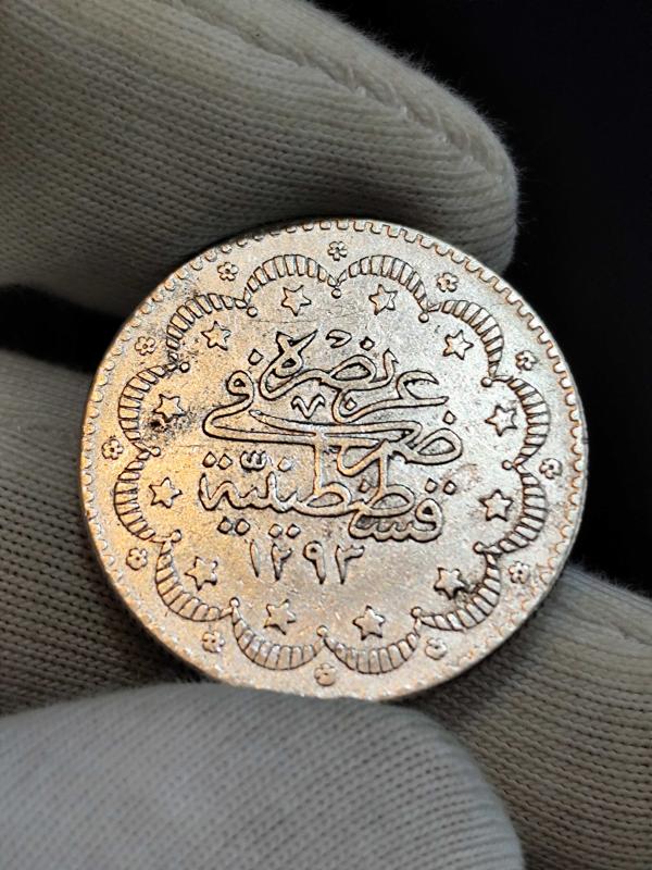 Sultan Abdülhamit 1293/20 Gümüş 5 Kuruş Kondisyon Çil Altı Nadir bulunan paralardandır. Nadirlik RR Çil Katalog Fiyatı 2500 dolardır. Sadece 162400 adet basılmıştır.