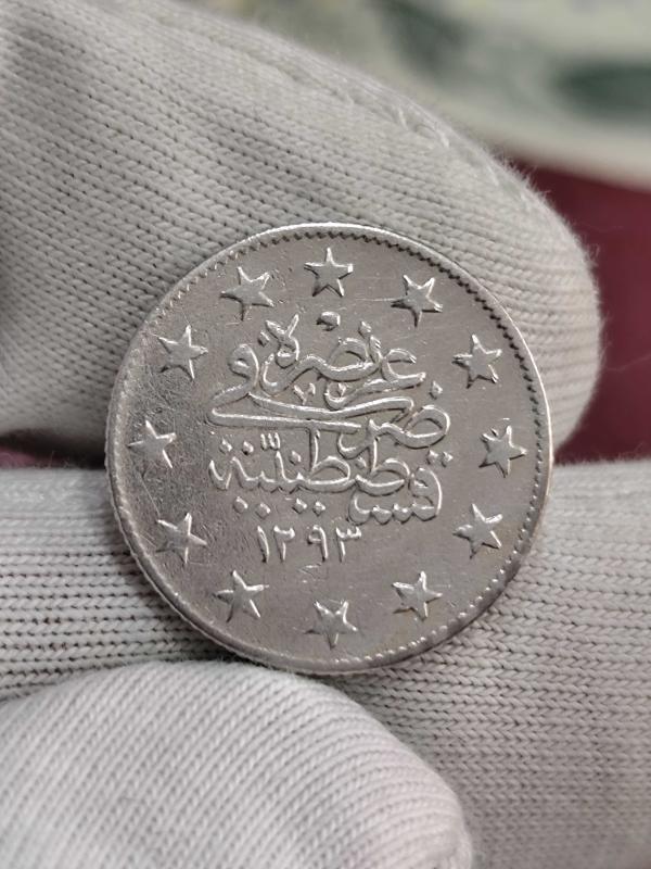 Sultan Abdülhamit 1293/22 Gümüş 2 Kuruş Nadir bulunan paralardandır. Kondisyon Çil