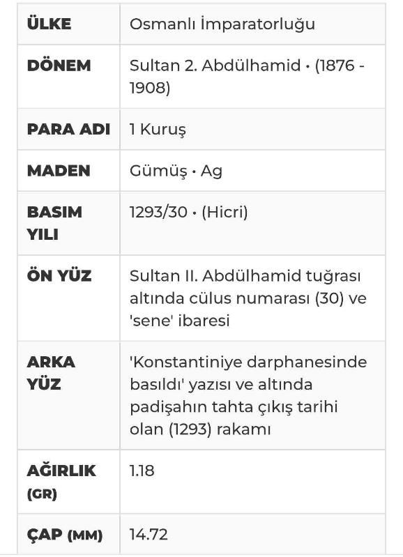Sultan II Abdülhamid (1908) 1293/30 1 Kuruş gümüş 1.18gr, 6 ay önce satışa sunulmuştur.
