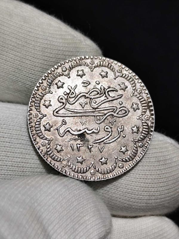 Sultan Reşat 1327/1 Bursa Seyahat Baskı Gümüş 5 Kuruş Kondisyon Çil/ Çil- Nadir Bulunan Paralardandır