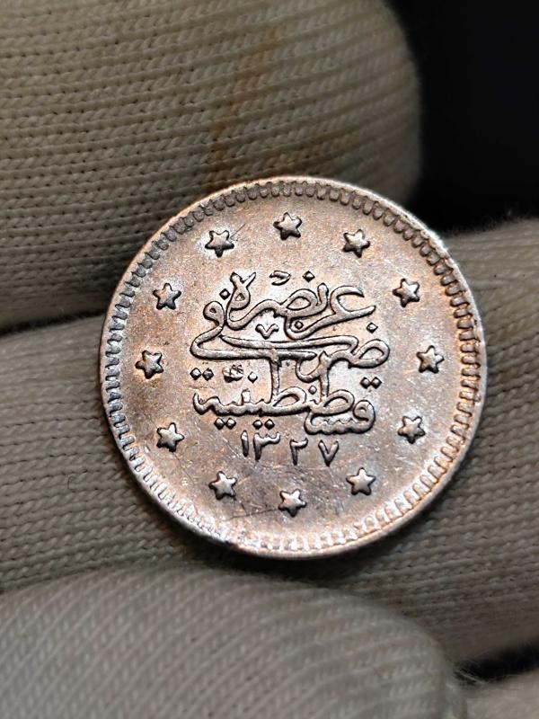 Sultan Reşat 1327/3 Gümüş 1 Kuruş Nadir bulunan paralardandır Nadirlik R Kondisyon Çil