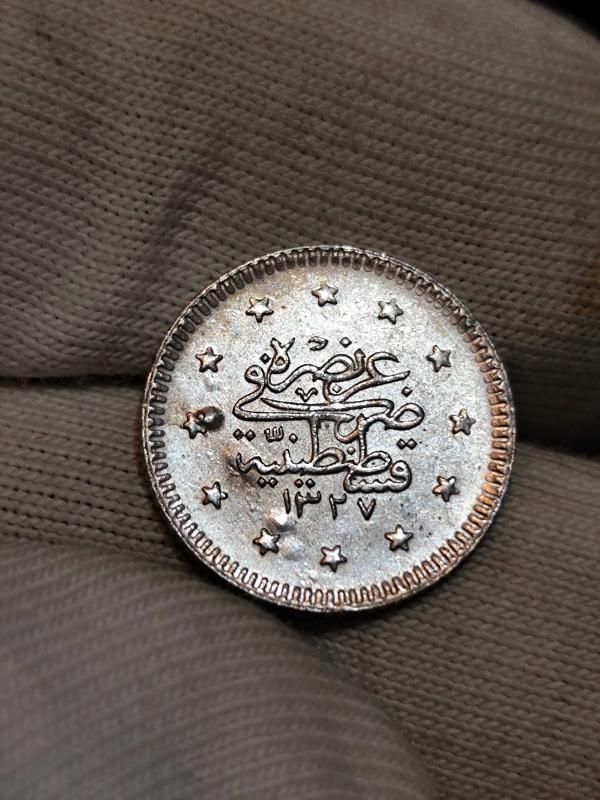 Sultan Reşat 1327/3 Gümüş 1 Kuruş Nadir bulunan paralardandır Kondisyon Çil