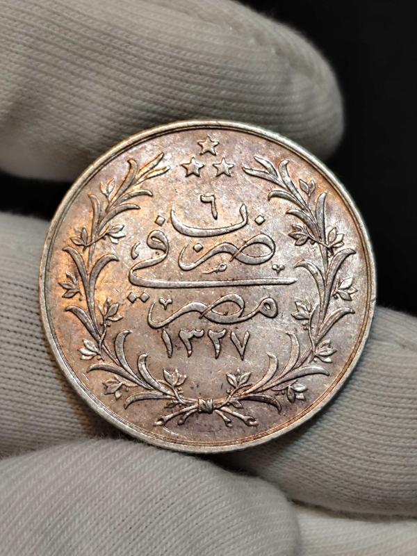 Sultan Reşat 1327/6 Mısır Baskı Gümüş 5 Kuruş Kondisyon Çil