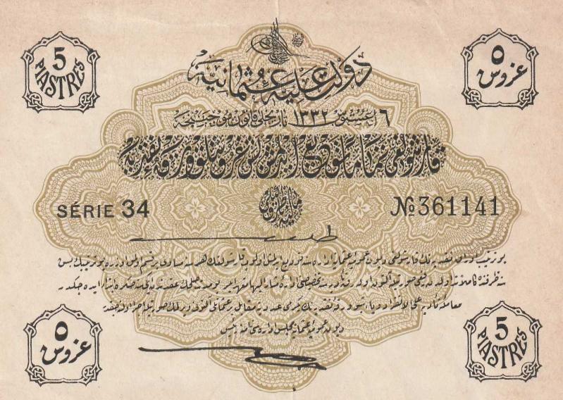 Sultan V. Mehmed Reşad, 5 Kuruş, 1332, ÇİL, Seri 34