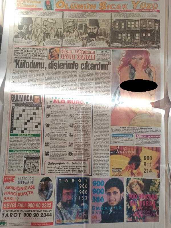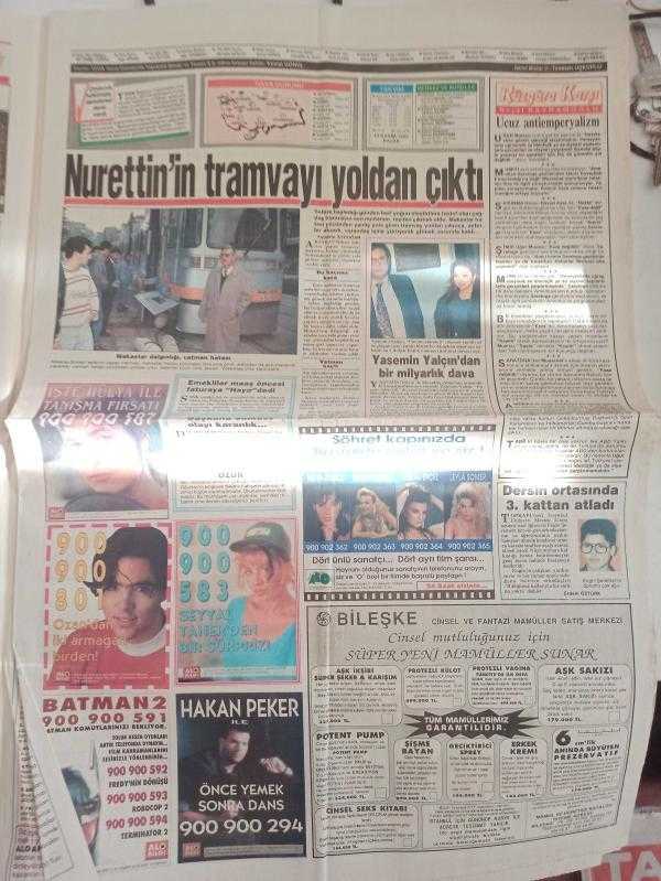 Süper Tan Haftalık Magazin ve Siyasi Aktüalite Gazetesi - 15 Kasım 1992 - Süleyman Demirel - Arkamda güçlü kişiler var - Serpil Alkan - Rahmi Koç - Sevtap Demiroğulları - Emel Çelik - Selmin Alponat - Hülya Mecilli, Ankara'nın başına bela oldu - Ölümün Sıcak Yüzü çizgi romanı - Haldun Sevel - Süper Tan'cıların Uydu Kanalı - Nurettin'in tramvayı yoldan çıktı - Yasemin Yalçın'dan dava - Rüzgara Karşı - Engin Şeremet - Maydanoz - Thierry Laroche - Ekran Çıldırdı - Dansözlü Gece - Leyla Adalı - Ozan Orhon - Muazzez Ersoy - Cem Karaca - Korkunç Tatil filmi - Körfez savaşı Kocaeli'nin - Beşiktaş yenilmiyor - Bedmen: Kötü Adam fotoromanı - Yavuz Karakaş - Sedat Özen - Hülya Ertan - Fadıl Öz - Sevtap, Avrupa'nın En Güzel Türk Kızı - Gonca Çalhan - Deniz Altıner - Sermin Yaman - Seval Şafak - Sevgi Hafızoğlu - Dilek Turkayık - Berna Çpın - Birsen Bakkaloğlu - Şule Kırmızıbayrak - Kumsal Altıner - Pelin Dursun - Selda Akyıldız fotoğraf ve haberi - Tam Takım Gazete Yıpranma, sararmalar, kupon kesiği ve yırtılmalar zamana bağlı olarak görülebilir