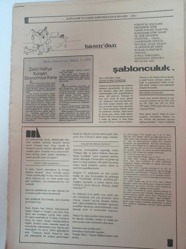 Şura Gazetesi - 23 Mart 1978 - Sayı 10- Siyonist Katillerden Hesap Soracağız Osmanlı Şeriat Devletinin Katili De Siyonistlerdi İşte Mason Ziya Gökalp - Amerikan Temellerinin Temsilcisi MC. Namara Ve CHP - Bülent Ecevit Ve Karamanlis Muhalefete Bilgi Verdi - Mümtaz Soysal - Şablonculuk- Kızıl Alfabe adlı eser, Kitap > Süreli Yayınlar > Gazeteler kategorisinde İkinci El olarak satıştadır.