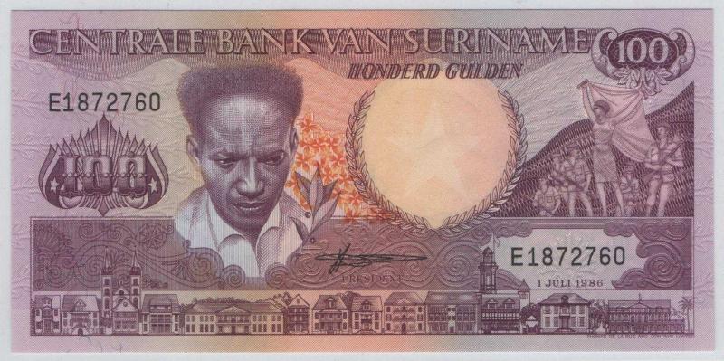 Surinam 1986 Yılı 100 Gulden ÇİL, bir ay önce satışa sunulmuştur.