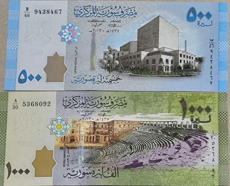 Suriye 1000 Pound ve 500 Pound Çil kondüsyonda, 1 yıl önce satışa sunulmuştur.