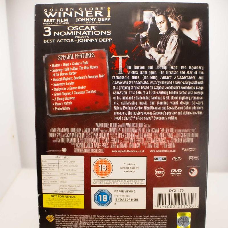 "Tim Burton’ın karanlık başyapıtı Sweeney Todd: The Demon Barber of Fleet Street – Johnny Depp’in unutulmaz performansıyla! 2 Disc Special Edition yabancı basım ve Türkçe basım DVD seti birlikte. Koleksiyoncular için nadir bulunan bu paket, gotik atmosferi ve özel içerikleriyle arşivinize değer katacak. 18 yaş üstü izleyiciler için uygundur.