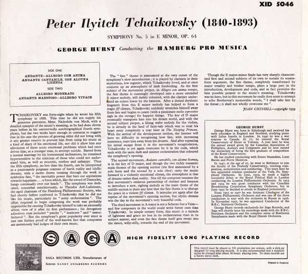 Fotoğraftaki gibi temiz, çok titiz kullanılmış, ilk sahibinden, kütüphane plağı. Tchaikovsky*, George Hurst Conducting The Hamburg Pro Musica – Symphony No. 5 In E Minor, Op. 64 Pyotr Ilyich Tchaikovsky - Symphony No. 5 In E Minor, Op. 64 album cover Made in USSR Genre:Classical Style:Romantic Year:1959 Symphony No. 5 In E Minor Op. 64 Andante - Allegro Com Anima Andante Cantabile, Con Alcuna Licenza Allegro Moderato Andante Maestoso - Allegro Vivace