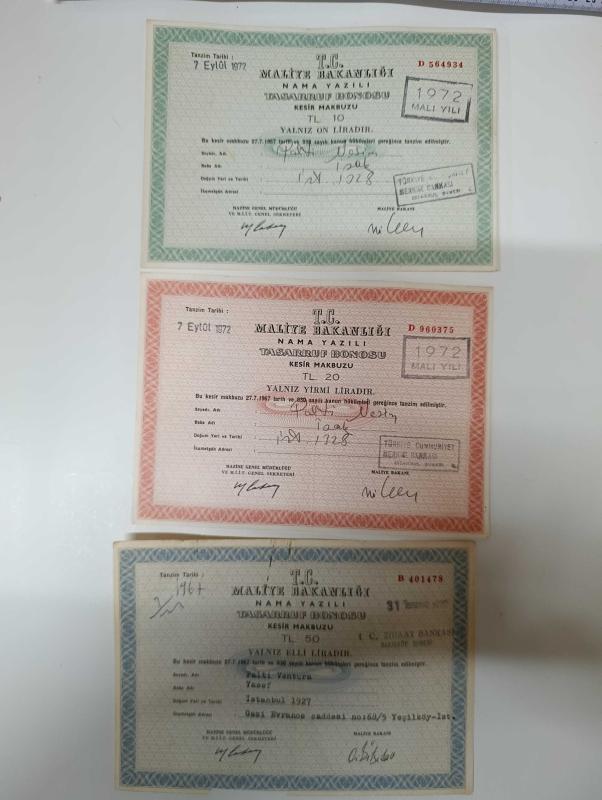 DÖNEM ÜRÜNÜ T.C MALİYE BAKANLIĞI NAMA YAZILI TASARRUF BONOSU ÜÇ ADET * KOLEKSİYON EKSİKLERİNİZ VE FAZLALIKLARINIZ İÇİN İLETİŞİME GEÇEBİLİRSİNİZ * KOLEKSİYON TAKİBİ YAPILIR * LÜTFEN SAYFAMIZI TAKİP ETMEYİ VE DİĞER ÜRÜNLERİMİZE BAKMAYI UNUTMAYINIZ