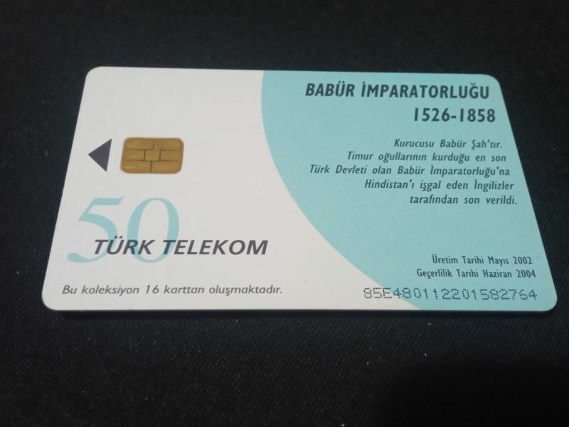 T.TELEKOM BÜYÜK TÜRK DEVLETLERİ- BABÜR ŞAH 1526-1858 başlıklı ürün, Efemera, Müzik, Sinema > Jetonlar ve Telefon Kartları > Telefon Kartları > Yerli Kartlar kategorisi altında İkinci El olarak satılmaktadır.