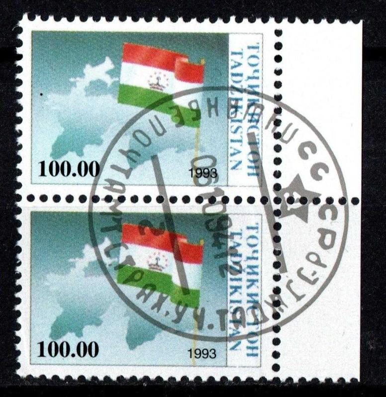 TACİKİSTAN 8 Haziran1993 Bağımsızlık Günü :Tacikistan Bayrağı ve Haritası Postadan Geçmiş 06.09.94 tarihli Duşanbe Göbek Damgalı 20 Ruble 2 'li Pul Yeni bağımsız olan devletin sembollerini (bayrak ve ülke sınırları) gösteren en kritik pullardır.