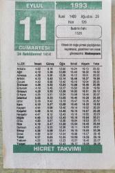 TAKVİM YAPRAĞI - 11 EYLÜL 1993 CUMARTESİ (KOLEKSİYONLUK), en son 2 ay önce güncellenmiştir.